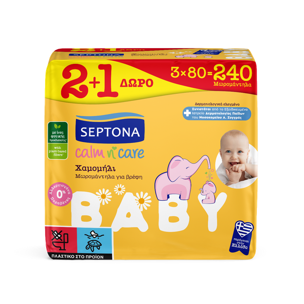 Μωρομάντηλα Septona Calm n Care Χαμομήλι 240τμχ (160+80 ΔΩΡΟ)