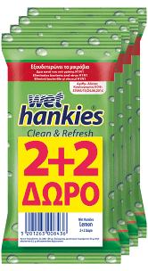 Αντιβακτηριδιακά μαντήλια για τα χέρια Wet Hankies 15τεμ 2+2